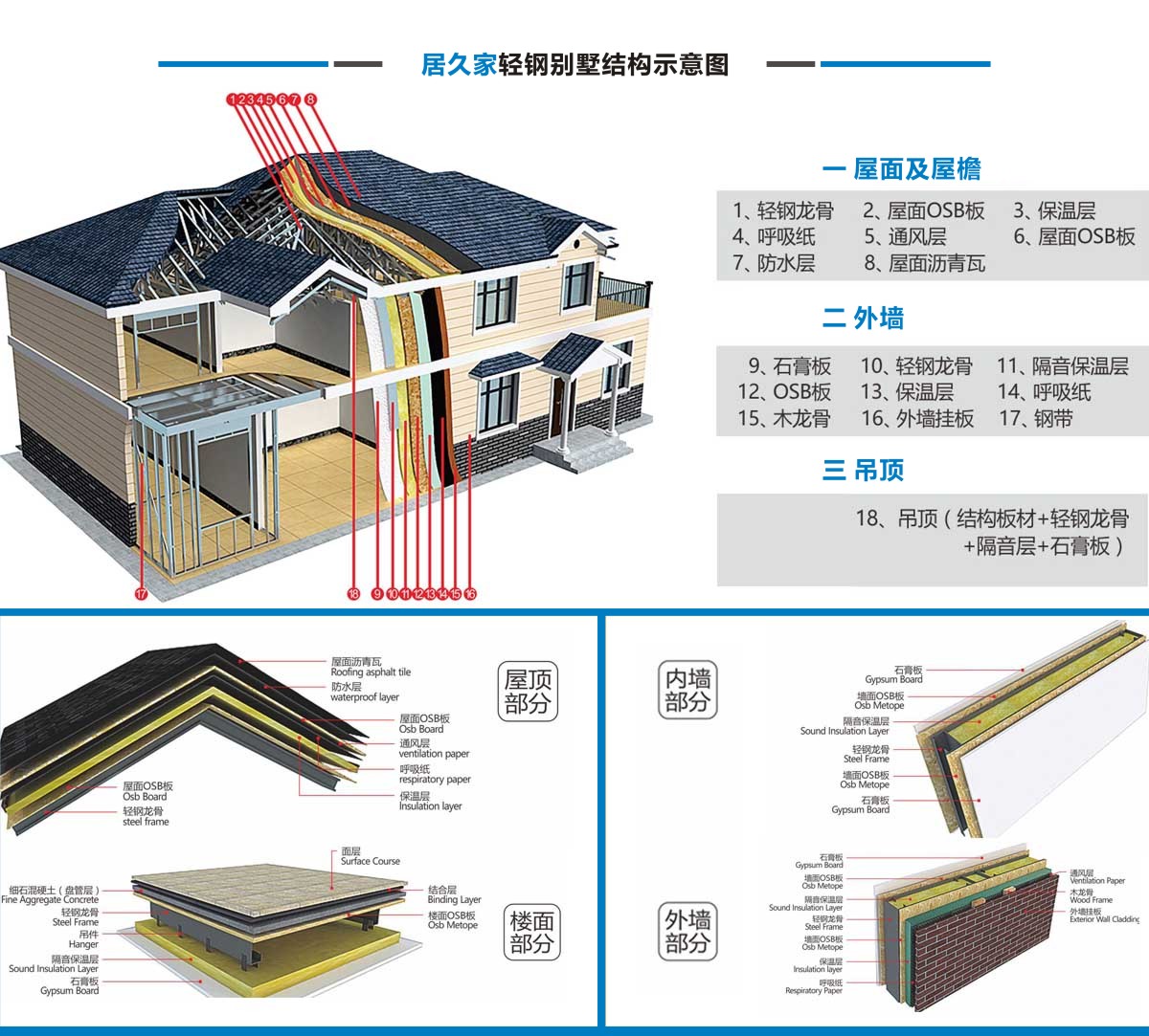 居久家輕鋼別墅隸屬于四川萬建城建筑工程有限公司,集科研、設計、咨詢、加工、生產(chǎn)安裝為一體。一直致力于新型輕鋼結構房屋的研究、開發(fā)和應用,倡導房屋建筑的設計和應用在標準化、模塊化、通用化、規(guī)模化生產(chǎn)的同時,實現(xiàn)人居環(huán)境的個性化、人性化、以及健康和舒適。 公司目前引進具有國內(nèi)先進水平輕鋼結構房屋建筑技術和生產(chǎn)線,標準化、精細化和定制化設計、制造、安裝輕鋼結構房屋。不僅能夠提供風格各異的別墅建筑,同樣能夠提供行業(yè)標準的輕鋼樓宇建筑及建筑群。居久家裝配式房屋技術體系是高效節(jié)能型綠色建筑體系,各項建筑物理性能卓越,處于業(yè)內(nèi)先進水平,能夠為客戶提供全程模塊化綠色建筑集成解決方案。